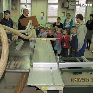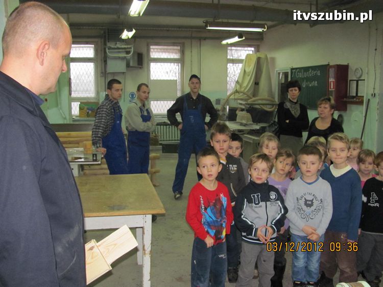 3 grudnia 2012 r. dzieci z grupy ?Biedronki? z Samorządowego Przedszkola nr 3 w Szubinie pod opieką nauczycielek Marleny Sikora i Małgorzaty Łuksztet odwiedziły warsztat stolarski w Młodzieżowym Ośrodku Adaptacji Społecznej w Szubinie. Dzięki zaproszeniu P. Tomasza Kmiecia, nauczyciela zawodu, dzieci mogły poznać pracę stolarza. Na zajęciach przedszkolaki wraz z pomocą wychowanków ośrodka wykonały ozdoby świąteczne. Dzieci z zachowaniem bezpieczeństwa własnoręcznie szlifowały drewniane podstawki, a następnie dekorowały przygotowane choinki według swojego pomysłu. Wycieczka była bardzo udana i dostarczyła dzieciom niesamowitych wrażeń, po raz pierwszy ?Biedronki? miały okazję poznać miejsce pracy w stolarni i narzędzia jakimi posługuje się stolarz w czasie wykonywania czynności. Na koniec spotkania, każdy otrzymał piękną choinkę wykonaną przez wychowanków MOAS Szubin. Dzieci wspólnie ze swoimi wychowawczyniami bardzo dziękują za miłe i serdeczne przyjęcie.