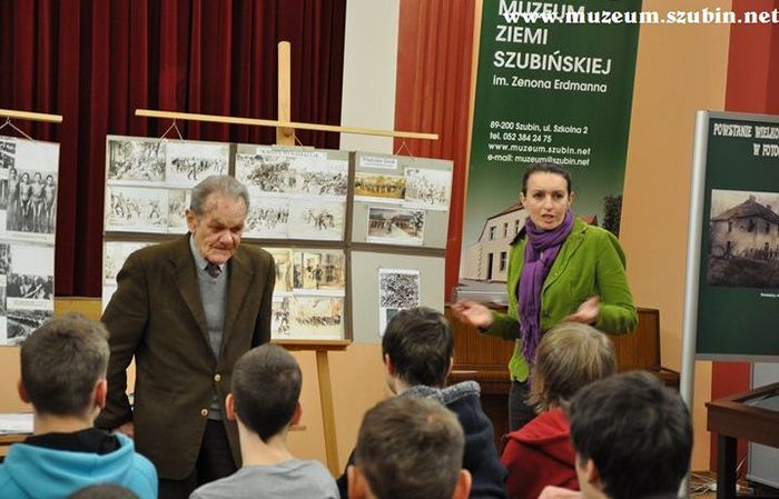 W muzeum odbyła się żywa lekcja historii dotycząca II wojny światowej. Z młodzieżą gimnazjalną spotkał się więzień obozu koncentracyjnego w Oświęcimiu Jacek Zieliniewicz, obecnie mieszkaniec Bydgoszczy. Młodzież i mieszkańcy regionu wysłuchali relacji naocznego świadka, który opowiedział o swoich przeżyciach z obozu, o funkcjonowaniu i życiu codziennym w KL Auschwitz. Jacek Zieliniewicz urodził się w 1926 r. w Janowcu Wielkopolskim. 20 sierpnia 1943 r. został ujęty podczas masowego aresztowania mieszkańców, a 23 sierpnia 1943 r. przywieziony do KL Auschwitz, gdzie otrzymał numer 138142. Pracował w Birkenau w komandzie murarzy. Latem 1944 r. przeniesiono go do Dautmergen ? podobozu KL Natzweiler. W grudniu 1945 r. wrócił do rodzinnego Janowca. Nie była to pierwsze spotkanie J. Zieliniewicza z uczniami szubińskich szkół. W tej lekcji wzięli udział uczniowie klasy III a I III b z nauczycielkami Marleną Posadzy i Wiolettą Tomaszewską z Gimnazjum nr 1 w Szubinie.