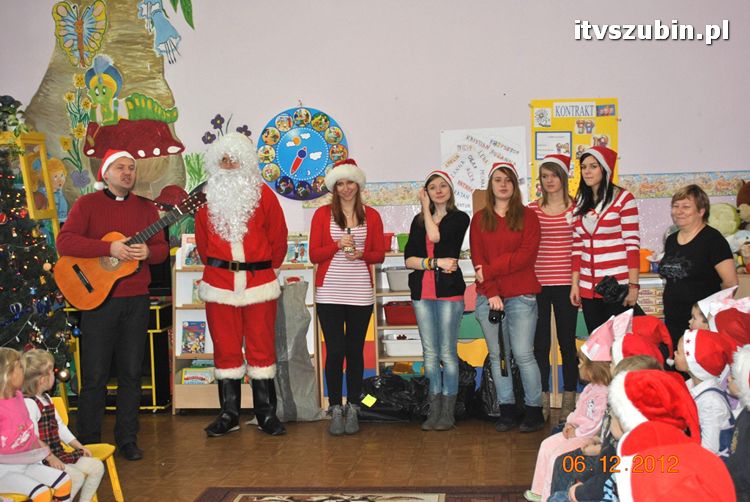 Do Samorządowego Przedszkola nr 3 w Szubinie w dzień świętego Mikołaja zawitali niecodzienni goście. O godz. 9.30 dzieci wzięły udział w koncercie mikołajkowym przygotowanym przez księdza Artura Zarasia z parafii św. Andrzeja Boboli z uczniami Liceum Ogólnokształcącego w Szubinie. Były też śnieżynki oraz św. Mikołaj, który obdarował dzieci upominkami. Po tym pięknym spotkaniu dzieci 5-letnie miały jeszcze jednego gościa. Był to ksiądz kanonik Tadeusz Lesiński, który przybliżył dzieciom historię św. Mikołaja. Było to bardzo ciekawe i pouczające spotkanie. Dzieci wiedzą co znaczy być dobrym i dzielić się z innymi. Dzieci i nauczyciele bardzo dziękują księżom za miłe spotkania.