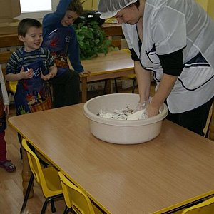 W dniach 13 i 14 grudnia 2012 r. grupa ?Żabek? i ?Gumisiów? z Samorządowego Przedszkola nr 2 w Szubinie piekły świąteczne pierniczki. Dzieci poznały tradycję pieczenia pierników. Zarabiały ciasto wsypując po kolei składniki, wałkowały ciasto, następnie wyciskały za pomocą różnorodnych foremek pierniki. Zapach roznosił się w całym przedszkolu. Dzieci obdarowały pierniczkami najbliższych, koleżanki i kolegów, składając świąteczne życzenia.