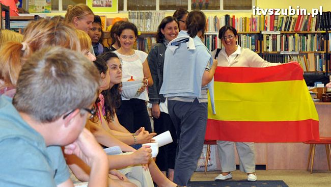 Uczestnicy kursu hiszpańskiego w szubińskiej książnicy przygotowywali się długo do międzynarodowego spotkania czując pewną tremę. Szybko okazało się, że nabyte  zdolności językowe starczyły w zupełności. Kilkugodzinne spotkanie w środowy wieczór upłynęło jak jedna chwila. Złożyły się na nią m.in. popisy lingwistyczne polek, opowieść o Hiszpanii naszych gości, pokaz tańca i przygotowanie sangrii oraz wspólne biesiadowanie. Należy dodać, że o ciepłe przyjęcie gości zatroszczyli się  uczestnicy kursu hiszpańskiego w Szubinie. Pod kierunkiem Marii Mańkowskiej kierowniczki działu przygotowali liczne smakołyki i placki. Był też czas by  kilkunastoosobowa grupa dziewcząt ze słonecznej Hiszpanii zwiedziła bibliotekę. Liczymy, że to nie ostatnia wizyta dziewcząt z Hiszpanii. Rejonowa Biblioteka Publiczna w Szubinie wznowi od września naukę hiszpańskiego, będzie więc szansa  na ciekawą przygodę zapraszamy! ? oświadczył dyrektor Mirosław Rzeszowski.