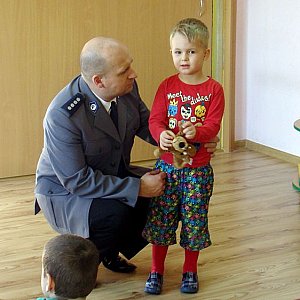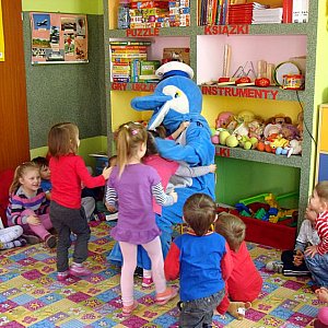6 marca 2013 r. w szubińskim ?Słoneczku? odbyło się spotkanie z policjantem nadkomisarzem Arturem Krajewskim. Zaproszony gość zjawił się w przedszkolu, w towarzystwie policyjnej maskotki ? Polfinka. Dzieci z dużą uwagą i skupieniem słuchały nadkomisarza, który opowiadał o zasadach bezpieczeństwa podczas zabaw na powietrzu oraz w mieszkaniu. Przedszkolaki dowiedziały się m.in. jak powinny reagować, gdy zaczepi je ktoś nieznajomy, a także jaką pozycję przyjąć, gdy zaatakuje je pies. Na zakończenie ciekawego i pouczającego spotkania przybyli goście obdarowali dzieci gadżetami i kamizelkami odblaskowymi, które przyczynią się do bezpieczniejszego przemieszczania się przedszkolaków poza terenem placówki. Jeszcze raz pragniemy serdecznie podziękować Panu Arturowi za wspólne spotkanie, które przebiegło w bardzo miłej i przyjaznej atmosferze, a także za wszystkie przyniesione podarunki.