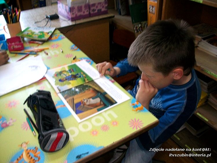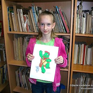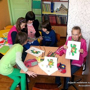 W bibliotece szkolnej w Zespole Szkół w Kowalewie rozpoczął się cykl spotkań poświęcony książeczkom z serii ?Franklin i przyjaciele?. Pani bibliotekarka przeczytała dzieciom książkę pt.: Franklin i książka z biblioteki. Po zakończeniu dzieci zastanawiały się wspólnie czy gdyby ktoś z nich zagubił książkę z biblioteki to czy musiałby przychodzić do niej w przebraniu, zakamuflowany, tak by pani bibliotekarka nie poznała delikwenta? Dzieci zaczęły radzić Franklinowi co oni zrobiliby w takiej sytuacji. Zastanowiliśmy się również nad tym w jaki sposób można zapisać się do biblioteki, i jak to się dzieje, że komputer wszystko wie, jak się nazywamy, jakie książki do tej pory wypożyczyliśmy i gdzie znaleźć te, które nas interesują. Gdy już wszystkie pytania otrzymały odpowiedzi, uczestnicy wymyślili nowe przygody Franklina i zabawili się w grafików, którzy projektują i rysują okładki do książek. Efekty swej pracy pozostały do wglądu małych czytelników. Może w przyszłości ujrzymy w księgarni przygody Franklina na traktorze. Na zakończenie dzieci wybrały franklinowe książeczki do domu oraz otrzymały pamiątkowe zakładki. Natomiast dzieciom z przedszkola czytano przygody pt.: ?franklin i statek kosmiczny? ? dzieci rysowały piękne ilustracje do tekstu oraz miały możliwość własnoręcznie wykonać rakietę.