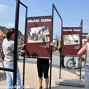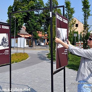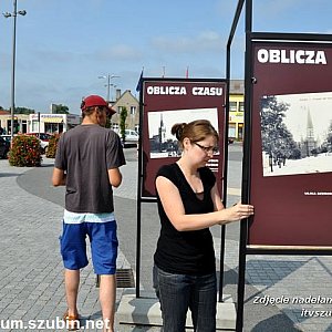 Na szubińskim rynku zaszła zmiana. Chodzi oczywiście o zmianę plenerowej wystawy przygotowanej przez Muzeum Ziemi Szubińskiej, która jest eksponowana na rynku. Wystawa pt. ?Magiczne miejsca ? dworce kolejowe powiatu nakielskiego? została zastąpiona wystawą ?Oblicza czasu?. Jest to kolejna ekspozycja, na której prezentujemy pocztówki ze zbiorów Muzeum. Można na niej zobaczyć ulice i budynki w Szubinie, ale również widoki z innych miejscowości takich jak Kcynia, Barcin i Łabiszyn oraz mniejszych m.in. Turu, Rynarzewa czy Zalesia. Wystawa ?Oblicza czasu? cieszyła się dużym zainteresowaniem już w momencie jej montażu, sprzyjała także rozmowom mieszkańców o przeszłości budynków w mieście. Podczas zmiany ekspozycji rozdawaliśmy także katalogi nowej wystawy, które są dostępne bezpłatnie w siedzibie Muzeum. Zachęcamy do spacerów na szubiński rynek i zwiedzania wystawy o mieście, regionie oraz historii zapisanej w budynkach i pejzażu. Wystawa ?Oblicza czasu? to projekt realizowany ze środków ?Europejski Fundusz Rolny na rzecz Rozwoju Obszarów Wiejskich: Europa inwestująca w obszary wiejskie? Kultywowanie miejscowych tradycji ziemi szubińskiej poprzez organizację wystaw w muzeum w plenerze w Szubinie, w oparciu o zakupione plansze? współfinansowane jest ze środków Unii Europejskiej w ramach osi 4 ? Leader Programu Rozwoju Obszarów Wiejskich na lata 2007?2013. Instytucja Zarządzająca PROW 2007?2013 ? Minister Rolnictwa i Rozwoju Wsi. Środki na realizację są wydatkowane w ramach Lokalnej Strategii Rozwoju ?Łączy nas Noteć? wdrażanej przez Stowarzyszenie ?Partnerstwo dla Krajny i Pałuk?.