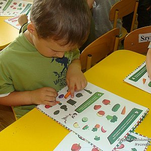 Przedszkole Niepubliczne ?Słoneczko? w Szubinie wzięło udział w programie edukacyjnym pt. ?5 porcji warzyw, owoców lub soku?, organizowanym przez stowarzyszenie Krajowa Unia Producentów Soków. Podstawowym założeniem programu jest edukacja przedszkolaków, rodziców i nauczycieli w celu kreowania zdrowych nawyków żywieniowych. Otrzymaliśmy materiały edukacyjne ze scenariuszami zajęć, książeczki dla każdego dziecka oraz broszury informacyjne dla rodziców. Przeprowadzone w ramach programu zajęcia cieszyły się dużym zainteresowaniem wśród dzieci, które chętnie w nich uczestniczyły. Poprzez zmysły smaku, węchu, wzroku i dotyku dzieci mogły same doświadczyć przyjemności obcowania z witaminami. W programie wykorzystaliśmy witaminy zawarte w jabłkach i marchewkach. Część owoców posłużyła nam do własnoręcznego wykonania soków, a pozostałe degustowaliśmy w formie nieprzetworzonej, co okazało się dla dzieci ?przepyszną? zabawą!!! Z pewnością podjęte w ramach programu ? 5 porcji warzyw, owoców lub soku? działania edukacyjne przyczyniły się do kształtowania wśród naszych dzieci właściwych nawyków żywieniowych, a ponadto ubogaciło wiedzę oraz pomogło w rozwoju zdolności manualnych.