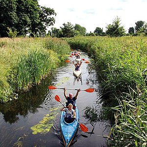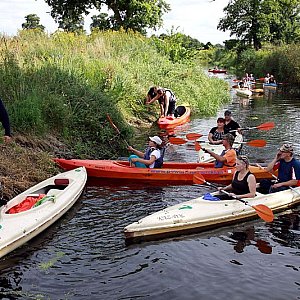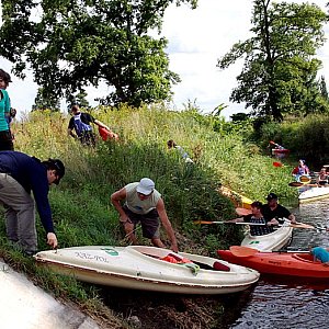 Wiele wspaniałych wrażeń przeżyli uczestnicy dwudniowego spływu kajakowego Jeziorem Sobiejuskim, Gąsawką i Notecią do Nakła. Dwudziestu sześciu kajakarzy nie spodziewało się, że po deszczowym poranku w sobotę wyjdzie słońce i spiecze im ciała na kolor powracających do naszych wód raków. Przepiękne i dzikie Jezioro Sobiejuchy, później zarastająca trzcinami Gąsawka, kawa i ciastka przy ruinach zamku Sędziwoja w Szubinie, dalej trasa wokół kołaczkowskiej góry i spotkanie na rynarzewskiej łące ? to dzień pierwszy. Pyszny bigos, kiełbaski na ognisku, pajdy ze smalcem i ogórki jedzone były przez całą noc i ranek, bowiem w Rynarzewie nocowała większość uczestników spływu. W niedzielę popłynęli do Nakła. Przenoska w Żurczynie, postój w Turze, posiłek w Chobielinie, zwiedzanie okolic młyna ? to dzień drugi. Nie obyło się bez niespodzianek: zwalone pnie, zatory z rzęsy i niestety śmieci. Po majowym sprzątaniu nie zostało śladu ? to przykre zaskoczenie. I apel: szanujmy piękno przyrody, puszki i butelki zabierajmy do domu! Spływ zorganizowany przez członków zarządu Stowarzyszenia Inicjatyw Rozwoju Rynarzewa prowadzili Patryk Szymczak i Michał Szweda. Należy dodać, że obaj panowie ukończyli niedawno kurs "Instruktorów Turystyki i Rekreacji PZKaj stopnia III" uprawniający do prowadzenia spływów kajakowych. Dla osiemnastoletniego Patryka był to pierwszy spływ w nowej roli, a takiej okazji nie przepuścili mu rynarzewscy kajakarze i w wodach przystani w Nakle doszło do symbolicznego chrztu. Dla członków SIRR był to także ostatni z czterech spływ w ramach projektu ?Pływamy z SIRR już od 10 lat ? powiat dla stowarzyszeń, SIRR dla powiatu?, a wieczorne spotkanie członków i sympatyków SIRR zakończyło projekt ?Rynarzewo, Brzózki, Niedźwiady czyli woda, sztuka i gwiazdy? promujący wioski tematyczne w gminie Szubin. Oba projekty dofinansowane były przez Powiat Nakielski w ramach otwartych konkursów ofert nr 5 i 8 ?Ekologia i turystyka?.