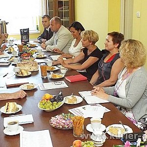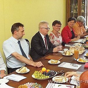 29 sierpnia 2013 r. po spotkaniu związanym z wręczeniem awansów zawodowych nauczycielom szkół ponadgimnazjalnych odbyła się narada dyrektorów wspomnianych szkół. Na naradzie pożegnano Leszka Mrotka, dyrektora Zespołu Szkół Specjalnych w Szubinie, który po 40 latach pracy z dniem 1 września 2013 r. przechodzi na emeryturę. Starosta Nakielski - Tadeusz Sobol wręczył list gratulacyjny z okazji jubileuszu 40 lecia pracy i podziękowanie za lata pracy wraz z życzeniami wypoczynku na zasłużonej emeryturze. Wręczono również listy gratulacyjne Małgorzacie Ciechanowskiej - dyrektor Zespołu Szkół Ponadpodstawowych w Samostrzelu obchodzącej jubileusz 30 lecia pracy zawodowej oraz Kindze Ciszewskiej, która obchodziła jubileusz 20 lecia pracy zawodowej. Pani Kinga Ciszewska od dnia 1 września 2013 roku będzie dyrektorem Zespołu Szkół Specjalnych w Szubinie. Obecni na naradzie Andrzej Kinderman - Wicestarosta Nakielski i Ewa Szłapa - dyrektor Wydziału Edukacji przyłączyli się do gratulacji i życzeń oraz wręczyli wiązanki kwiatów.
