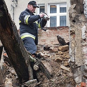23 marca 2014 r. przed godz. 11.00 na stanowisko kierowania Komendy Powiatowej PSP w Nakle nad Notecią wpłynęło zgłoszenie o zawaleniu się stropodachu w budynku przy ul. Długiej 6 w Nakle nad Notecią. Na miejsce udali się strażacy z Jednostki Ratowniczo-Gaśniczej nr 1 w Nakle nad Notecią. Zamknięta została dla ruchu ul. Długa. Strażacy za pomocą kamery termowizyjnej sprawdzali czy przypadkiem pod około 5 tonowym rumowisku nie ma źródeł ciepła. Uwzględniając jednak, że nocują tam bezdomni strażacy przystąpili do odgruzowania, aby upewnić się że nikt nie został przysypany. Odgruzowywanie zawalonych pomieszczeń trwał około 3 godzin. Na szczęście nikogo pod rumowiskiem nie znaleziono. Na miejscu pracowali strażacy z Jednostki Ratowniczo-Gaśniczej nr 1 w Nakle nad Notecią oraz z Ochotniczych Straży Pożarnych z Nakła nad Notecią, Paterka, Potulic, Ślesina i Cukrowni Nakło. Na miejsce przybył Powiatowy Inspektor Nadzoru Budowlanego oraz współwłaściciele nieruchomości, którzy zadecydowali, że we własnym zakresie usuną z jezdni drewno, cegły i ziemię z rumowiska. Działaniami ratowniczymi kierował mł. bryg. Sławomir Murawski - dowódca JRG w Nakle nad Notecią. Na miejsce przybyli przedstawiciele Powiatowego Centrum Zarządzania Kryzysowego i Gminnego Zespołu Zarządzania Kryzysowego.