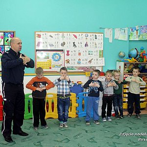28 marca 2014 r. najmłodsze dzieci z Zespołu Szkół w Rynarzewie uczestniczyły w spotkaniu z policjantem podinsp. Arturem Krajewskim. Zaproszony gość zjawił się w szkole w towarzystwie Polfinka-policyjnej maskotki. Dzieci w skupieniu wysłuchały pana policjanta, który przypomniał im o zasadach bezpieczeństwa na drodze,w domu i w czasie zabaw. Dzieci dowiedziały się m.in. jak powinny reagować na kontakty z nieznajomymi, a także jak zachować się i jaką pozycję należy przyjąć, gdy zaatakuje je pies. Pan Policjant obdarował maluchy odblaskowymi gadżetami, które na pewno przyczynią się do bezpiecznego przemieszczania się dzieci poza terenem szkoły. Na koniec spotkania wszystkie dzieci mogły przytulić się do błękitnego Polfinka, co zostało uwiecznione na pamiątkowych zdjęciach. Jeszcze raz dziękujemy Panu podinsp. Arturowi Krajewskiemu za ciekawe, pełne serca spotkanie,poświęcony czas i prezenty.