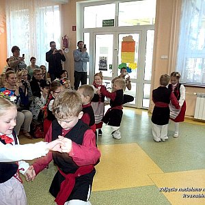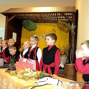 31 marca 2014 r. o godzinie 16.00 na życzenie Rodziców, odbył się pokaz obrzędu wielkanocnego, który Smerfy zaprezentowały już podczas Dnia Talentu oraz wyjazdu do Biblioteki Pedagogicznej w Bydgoszczy. Rodzice licznie zasiedli na widowni i z wielką radością oczekiwali na prezentację aktorskich zdolności swoich pociech. W blasku fleszy aparatów fotograficznych grupa Smerfów przedstawiła obrzęd wielkanocny. Rodzice reagowali śmiechem na pałuckie przywoływki, które bez trudności przywoływały dzieci. Wielkie wrażenie zrobiły także tradycyjne tańce, które podczas przedstawienia zaprezentowali mali aktorzy. Na zakończenie nastąpiła degustacja kiełbasy, sera oraz wielkanocnej baby, które zniknęły raz dwa z talerzyka, skonsumowane przez małych, smerfowych łakomczuchów. Przedstawienie bardzo podobało się Rodzicom, którzy z dumą gratulowali dzieciom talentów, które grupa Smerfy niewątpliwie posiada. Dzięki współpracy z Rodzicami, możliwe jest kultywowanie tradycji pałuckich, co jest istotnym elementem podczas realizowania zajęć dydaktycznych i programu wychowawczego.