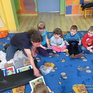 1 kwietnia 2014 r. dzieci z grupy ?Żabki? z Niepublicznego Przedszkola ?Słoneczko? w Szubinie odwiedził tutejszy artysta Pan Maciej Jeliński. Dzieci miały okazję przenieść się do Australii- krainy kangurów i zobaczyć obrazy inspirowane sztuką rdzennych mieszkańców kontynentu, Aborygenów. Żabki same miały okazję sprawdzić się w roli artysty i stworzyć własne niepowtarzalne dzieła. Z wielkim zapałem i pod czujnym okiem P. Macieja dzieci stworzyły własne przepiękne słoneczka. Galeria ich ?wielkich?, kolorowych dzieł wspaniale prezentuje się na ścianach naszego przedszkola. Serdecznie dziękujemy Panu Maciejowi za wspólnie spędzony czas i podzielenie się swoim warsztatem.