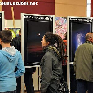 3 kwietnia 2014 r. o godzinie 18.00 w Muzeum Ziemi Szubińskiej otwarta została wystawa pt. ?Światła Kosmosu?, na którą zaprosiło Pałucko-Pomorskie Stowarzyszenie Astronomiczno-Ekologiczne oraz Muzeum Ziemi Szubińskiej. Wernisaż otworzyła Kamila Czechowska, dyrektor muzeum, oddała następnie głos Markowi Nikodemowi, który opowiedział o wystawie, na którą składają się zdjęcia autorstwa Karola Wenerskiego, Michała Witkowskiego, Marka Nikodema oraz Marcina Grzybowskiego. Wystawę fotografii uzupełniają wpisujące się w tematykę ekspozycji trzy obrazy Macieja Jelińskiego. Prócz fotografii prezentowanych na wystawie goście obejrzeli multimedialny pokaz zaprezentowany przez Marka Nikodema oraz wysłuchali wykładu ?Życie ? cudowne dziecko kosmosu? dr. hab. Macieja Mikołajewskiego z UMK w Toruniu. Mieli także okazję zapoznać się z dwumiesięcznikiem, którego redaktorem naczelnym jest dr hab. Maciej Mikołajewski, ?Urania - Postępy Astronomii? oraz przyjrzeć się z bliska meteorytowi. Serdecznie zapraszamy do zwiedzania.