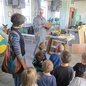 17 kwietnia 2014 r. Żabki z szubińskiego ?Słoneczka? dzięki uprzejmości Pana Wiesława Guzińskiego odwiedziły wychowanków Zakładu Poprawczego w Szubinie. Celem tej wizyty było poznanie zawodu stolarza. Po stolarni oprowadził nas Pan Tomasz Kmieć opowiadając i pokazując przeróżne narzędzia oraz maszyny wykorzystywane podczas pracy. Jako, że wizyta ta przypadła na czas przedświąteczny na naszych przedszkolaków czekała nie lada niespodzianka ?zajączki wielkanocne?. Dzieci przy odrobinie pomocy wyszlifowały zwierzaki, a następnie pomalowały je wykorzystując przeróżne kolory. Efekt końcowy był niesamowity. Korzystając z okazji, chcielibyśmy jeszcze raz, bardzo serdecznie podziękować Panu Tomaszowi Kmieć, Panu Jackowi Duda oraz wychowankom MOAS Szubin za miłą i przyjazną atmosferę, która panowała podczas spotkania oraz za upominki, którymi obdarowali przedszkolaków.