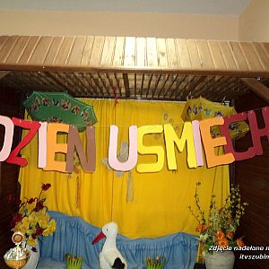 Nie ma na świecie bardziej przyjemnego dla oka widoku, niż uśmiech dziecka, szczery i beztroski. Śmiech doskonale wpływa na pozytywny nastrój człowieka, rozładowuje wszelkie napięcia i rozluźnia mięśnie. Naukowcy twierdzą, że powinniśmy śmiać się 5 minut dziennie. Zatem, dlaczego nie śmiać się więcej i nie dostarczać ku temu powodów? Dnia 22 kwietnia 2014 r. o godzinie 10.00 w Samorządowym Przedszkolu nr 2 w Szubinie rozpoczął się Tydzień Uśmiechu zorganizowany przez nauczycielki przedszkola dla wszystkich milusińskich a także dla uczniów ze Szkoły Specjalnej. Wtorkowy pokaz rozpoczął się pod hasłem Kulinarne dekoracje i muzyczne inspiracje. Na początku wystąpiła absolwentka naszego przedszkola, Lena Krajewska, która zaprezentowała zgromadzonej widowni aż trzy tańce. Lena poruszała się jak zawodowa tancerka, przekazując dzieciom moc wrażeń. Mimo młodego wieku, dziewczynka osiągnęła już wiele tanecznych sukcesów. Po występie Lenki nadszedł czas na hollywoodzkie szaleństwa. Dzieci pod okiem prowadzących znakomicie odtwarzały bollywoodzkie ruchy, dzięki czemu chociaż na chwile przeniosły się do indyjskiego świata i kultury. Następnie pani Ania zaciekawionej, a przede wszystkim uśmiechniętej widowni zaprezentowała swój kulinarny talent. Oczom dzieci ukazał się przepiękny statek, zrobiony z arbuza i innych smacznych owoców i warzyw. Dzieci miały także okazję wykroić z jabłka foremką ciekawy kształty. Przy okazji wszyscy przypomnieli sobie, jak istotne jest codzienne spożywanie warzyw, owoców i soku. Cały pokaz obfitował w dobra zabawę a uśmiech gościł na twarzach wszystkich dzieci - i o to chodziło! Środowa zabawa odbyła się pod hasłem Uczniowie ze ZS nr 2 grają i śpiewają. Wówczas na scenie swój talent wokalno-instrumentalny zaprezentowały uczennice z Zespołu Szkół nr 2 - Ola, Martyna oraz Mona. Publiczność bawiła się znakomicie podczas wokalnych występów starszych koleżanek w języku angielskim. Ogromne wrażenie na dzieciach zrobiły dźwięki gitary, prezentowane przez Monę. Urzekający śpiew dziewczyn wywołał uśmiech nie tylko na twarzach dzieci, ale i nauczycielek. Pszczółki i Smerfy - 5 latki z przedszkola, także chwaliły sie umiejętnościami lingwistycznymi. Na koniec, zgodnie już z tradycją Tygodnia Uśmiechu prowadzące porwały dzieci w bollywoodzki świat muzyki. Zabawa była przednia, a uśmiechy towarzyszyły dzieciom do końca dnia. Ponieważ muzyka jest lekiem na wszystko, na holu odbyła się zabawa taneczna przy muzyce granej przez tatę Maciusia - przedszkolaka z grupy Smerfy. W tym dniu dzieci miały możliwość zaprezentować się w dowolnym przebraniu. Cały hol wypełnił się tanecznymi krokami. Pociągów, wężyków czy tańcach w kołach nie było końca. Dzieci z wielką radością reagowały na znane przeboje i znakomicie wyrażały muzykę ruchem. Następnie wystąpili wychowankowie MOAS z Szubina, którzy swoimi zdolnościami kabaretowymi wywołali salwy śmiechu na sali. Również oni porwali dzieci w świat muzycznej zabawy. W piątek reprezentant zespołu ?Róże Europy?, tata Franka z grupy Smerfy zapoznał dzieci z dźwiękami perkusji. Mimo, że to bardzo głośny instrument, bardzo podobał się zgromadzonej publiczności. Okazało się, że gra na perkusji wymaga wiele wysiłku. Mimo tego, dzieci z zaciekawieniem i ogromną radością próbowały swoich sił uderzając pałeczkami o perkusje i jej talerze. Wiele spośród zgromadzonych dzieci zapowiedziało swoją karierę perkusisty w przyszłości. Tego dnia odbyło się również rozstrzygnięcie konkursu na instrumenty muzyczne, przygotowane przez poszczególne grupy w przedszkolu. Zwycięską grupą, wybraną przez jury, okazały się Żabki, które wykonały instrument kobzę. I to właśnie do tej grupy w tym roku trafił Puchar Uśmiechu! Na zakończenie dzieci otrzymały drobne upominki w postaci filcowych jajeczek. Niestety, tydzień pełen wrażeń zakończył się szybko, być może za szybko. Nauczycielkom udało się osiągnąć najważniejszy cel Tygodnia Uśmiechu - wywołać uśmiech na twarzy każdego dziecka oraz rozbudzić muzyczne talenty wśród dzieci. Muzyka stała się ?lekarstwem dla duszy?, a ?muzyczna apteczka? zawierała utwory na ożywienie nastroju, rozładowanie emocji, uspokojenie i w końcu na polepszenie humoru. Udało się zasiać małe ziarenko, które stało się początkiem lepszych dni, z uśmiechem na twarzy!
