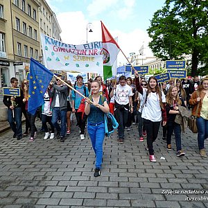 Już po raz 12. uczniowie z klubów europejskich pojechali do Warszawy na Polskie Spotkania Europejskie, których główną atrakcją jest wielobarwna Parada Schumana. Tym razem wyjazd odbył się w ramach projektu ?10 lat w Unii Europejskiej? realizowanego przez szubińskie LO w ramach zajęć pozalekcyjnych, a finansowanego przez powiat nakielski. Dwudniowa wycieczka rozpoczęła się od zwiedzania Ministerstwia Spraw Zagranicznych. Urzędnicy ministerstwa omówili najważniejsze aspekty polskiej polityki zagranicznej, udział Polski w różnorodnych organizacjach międzynarodowych oraz przeprowadzili quiz z nagrodami. Z mieszkańcami swojej gminy rozmawiał także Radosław Sikorski. Drugim punktem wyprawy były zajęcia warsztatowe w Muzeum Narodowym na temat sztuki współczesnej. Dzień pierwszy zakończył się ( powodu deszczu) zakupami w Złotych Tarasach. W sobotę, 10 maja 2014 r. od rana młodzi szubiniacy zwiedzali Stare Miasto, a o 12.00 ruszyli Nowym Światem w kolorowym marszu, w którym w tym roku dominowały barwy ukraińskie. Uczniowie chętnie wypowiadali się do mikrofonów i kamer oraz robili sobie zdjęcia ze znanymi politykami. Po paradzie większość wzięła udział w licznych konkursach i quizach zorganizowanych w Miasteczku Europejskim. W wycieczce wzięły udział kluby europejskie: Euroumbrella z LO, Eurosmile z ZSP, Kwiaty Europy z Gimnazjum nr 2 oraz Europałuki z Gimnazjum nr 1. Udaną wyprawą kierowała Benadeta Kowalska (koordynator projektu), a opiekę zapewnili Agnieszka Grobelska ? Staniszewska i Artur Michalak.