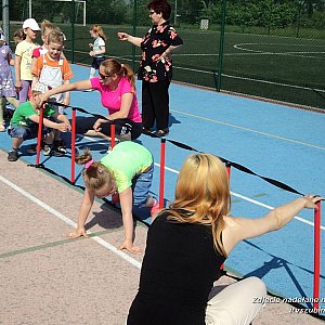 Grupa Smerfy z Samorządowego Przedszkola nr 2 w Szubinie realizuje program własny dotyczący zabaw i gier ruchowych, w oparciu o ćwiczenia ruchowe z różnych dyscyplin sportowych, które w naturalny sposób przyczynią się do usprawnienia ruchowego dzieci. Zabawy i gry ruchowe, w zastawieniu z innymi rodzajami ćwiczeń, angażują wielkie masy mięśniowe i dają okazje do wszechstronnego, wielokierunkowego i prawie nieograniczonego wpływania na człowieka. Opierając się o takie formy ruchu jak: chód, bieg, skok, rzut, umożliwiają nie tylko doskonalenie tych form, lecz na tej drodze również podnoszenie funkcji adaptacyjnej ustroju oraz zwiększenie jego przydatności życiowej. Zabawy ruchowe wpływają korzystnie na rozwój umysłowy dzieci oraz na kształtowanie woli i charakteru, uczą spostrzegawczości i logicznego myślenia. Wywierają bardzo dobroczynny wpływ na rozwój charakteru dzieci i takie jego cechy jak: samodzielność, śmiałość, pomysłowość, panowanie nad sobą, dokładność, zdyscyplinowanie. W miniony czwartek, 22 maja 2014 r. dzieci z najlepszymi nastrojami mogły sprawdzić swoją siłę charakteru na Orliku przy Zespole Szkół Ponadgimnazjalnych im. prof. Emila Chroboczka w Szubinie. Zabawy ruchowe z wysoką klasą przeprowadziła wraz ze swoimi uczennicami nauczycielka Dorota Adamczewska. Grupa Smerfy na początku rozpoczęła zajęcia rozgrzewką, a następnie czworakując, wspinając się pokonywała niską przeszkodę ? drabinkę sznurkową. Piłeczką do tenisa rzucała do celu, rozładowując przy okazji napięcie mięśniowe i emocje. Pani Dorota podzieliła dzieci na grupy: jedni ćwiczyli koordynację niesienia piłeczki na rakiecie tenisowej, a drudzy wykonywali skoki na dużej piłce. Na boisku piłki nożnej chłopcy ćwiczyli celność bramek, a dziewczynki skoki na piłce. Zabawy ruchowe zakończono w ten słoneczny dzień ?Pingwinkiem? oraz ?Stonogą?. Uśmiechnięte, spełnione i wymęczone dzieci wróciły do przedszkola, a pozytywnymi wrażeniami podzieliły się ze swoimi rodzicami. Serdecznie dziękujemy Pani Dorocie i grupie uczniów z ZSP za tak profesjonalne zachęcanie dzieci do aktywności ruchowej.