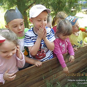 W piątek, 23 maja 2014 r. grupa Motylki z Samorządowego Przedszkola nr 2 w Szubinie (oddział zamiejscowy w Rynarzewie) pojechała na wycieczkę do Solca Kujawskiego. Najpierw dzieci spacerowały terenem leśnym, po którym oprowadził nas pan leśniczy. Wysłuchały opowiadań o jego mieszkańcach i obserwowały przepiękne zakątki leśne. Uczestniczyły w zajęciach nt. ?JEŻ ? NASZ PRZYJACIEL?. Pani Beata Woźniacka bardzo interesująco opowiadała milusińskim o tym, w jaki sposób należy udzielać pomocy jeżom i jak się nimi opiekować. Podczas zajęć dzieci poznały Gucia i Łapkę oraz ich smutną historię. Następnie przedszkolaki udały się na łąkę w celu poszukiwania konika polnego. Jednak zadanie to okazało się dość trudna i na finale wróciły z pająkiem , którego dokładnie obserwowały przez lupę. Później byli też inni mieszkańcy łąki , tj. mrówki, biedronki, ślimaki. Dużą atrakcją okazało się pieczenie kiełbasek, które dzieci zjadły z apetytem. Zmęczeni i pełni wrażeń wróciliśmy do przedszkola, gdzie czekali już na nas rodzice.