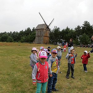 13 czerwca 2014 r. dwie grupy starszaków ?Pszczółki? i ?Zuchy? z Przedszkola Niepublicznego ?Słoneczko? w Szubinie wyjechały na wycieczkę do Osieka nad Notecią, gdzie znajduje się Muzeum Kultury Ludowej. Po przybyciu na miejsce, na przedszkolaków czekali już przewodnicy, którzy w prosty, ale bardzo ciekawy sposób opowiedzieli i oprowadzili po całym skansenie. Dzieci miały okazję zobaczyć przykłady drewnianego budownictwa wiejskiego z dawnych czasów oraz zbiory eksponatów i ekspozycji etnograficznych. Milusińscy chętnie wchodzili i zwiedzali domostwa chłopskie, pomieszczenia gospodarcze, warsztaty rzemieślnicze, kościół, szkołę wiejską. Widzieli piece chlebowe, studnie, kolorową pasiekę oraz piwnice ziemną. Najwięcej emocji dostarczyły dzieciom trzy duże wiatraki, gdzie do jednego z nich mogły wejść i od środka zobaczyć i usłyszeć o roli, którą pełnił w dawnych czasach oraz dawna remiza, w której mieściły się ówczesne wozy strażackie i sprzęt, którym posługiwali się strażacy podczas akcji ratunkowych. Na zakończenie pobytu w skansenie przedszkolaki udały się do karczmy, gdzie z dużym apetytem zjedli pyszne, domowe pierogi. Po czym pełni wrażeń udali się w drogę powrotną do przedszkola.