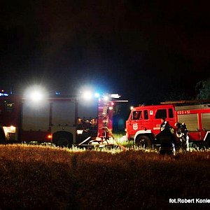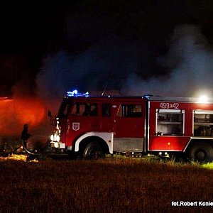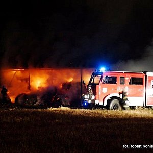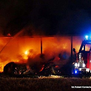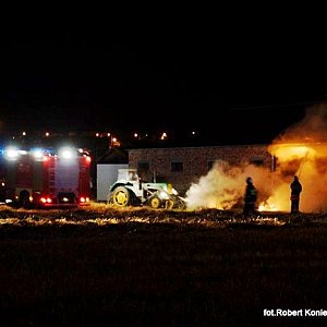 Minionej nocy 23 lipca 2014 r. na terenie prywatnego gospodarstwa rolnego na terenie Kcyni doszło do pożaru słomy, która w balotach była pod wiatą przylegającą do budynku inwentarskiego. Ogień wybuchł kilka minut przed pierwszą w nocy. W tłumie obserwujących działania pożarnicze dało się słyszeć, że ?najpierw był mały wybuch, ktoś miał widzieć uciekających czterech chłopców?. Przyczynę pożaru ustalają policjanci, którzy pracowali na miejscu zdarzenia. Pożar zauważyli młodzi ludzie, którzy powiadomili straż pożarną i policję. Prawdopodobnie dzięki szybkiej reakcji osób wzywających pomoc już po kilku minutach od wezwania na miejscu pożaru pojawiły się dwa kcyńskie wozy strażackie, a za nimi jednostki: z Jednostki Ratowniczo-Gaśniczej nr 1 w Nakle nad Notecią, OSP z Dziewierzewa, Sipior, Gromadna, Łankowic oraz Jednostki Ratowniczo-Gaśniczej nr 2 w Szubinie i oficer operacyjny mł.bryg. Sławomir Morawski. Na miejscu pożaru był także Dowódca Jednostki Ratowniczo-Gaśniczej nr 2 w Szubinie mł. Bryg. Mariusz Mantych. Działania pożarnicze polegały przede wszystkim na ochronie budynku inwentarskiego, który przylegał bezpośrednio do palącego siana. Udało się ewakuować 70 tuczników, dwa byki i siedem jałówek. Przy pomocy sprzętu rolniczego palące się baloty siana zostały wyciągnięte spod wiaty, złożone z bezpiecznej odległości od źródła ognia i zlane wodą. Cały teren z palącym się sianem został oborany w celu uniknięcia dalszego rozprzestrzeniania się ognia na pole ze zbożem. - informuje nasza redakcję mł.bryg. Mariusz Mantych. Ogień pochłonął 150 balotów siana. Dogaszanie palącej się słomy trwa jeszcze dziś. W tym dniu niestety był to drugi pożar gospodarstwa rolnego. Około południa w Górkach Dąbskich spłonęła obora, 18 tuczników, 40 brojlerów, słoma, ziarno. W tym przypadku pożar rozprzestrzenił się na pobliskie pole ze zbożem.