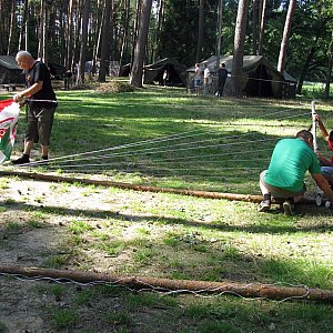 Tego lata Wielopoziomowa Drużyna Harcerska z Szubina, która wchodzi w skład drużyn Hufca ZHP PAŁUKI im. Olgi i Andrzeja Małkowskich w Żninie, swoją część wakacji postanowiła spędzić na Zgrupowaniu Hufców w Gaju k. Łąkarza, w bazie zlokalizowanej w Puszczy Brodnickiej. Zaraz po przyjeździe członkowie drużyny zabrali się za ustawianie i wyposażenie namiotów. Ciekawa praca, gdyż większość naszych harcerzy po raz pierwszy rozkładała tak duże namioty. Kolejnym ważnym elementem na obozie było tworzenie własnej, niepowtarzalnej pionierki obozowej. Tematem przewodnim obozu była fabuła marynarska oparta na przygodach żeglarza Luffy?ego i poszukiwaniu skarbu One Pice?a. Zadaniem pierwszym było zbudowanie swojego statku. Tu też druh pwd. Michał Mierzwiński podsunął pomysł, aby brama do naszego podobozu była w kształcie dwóch masztów. I tak się też stało. Do wieczora stanęły dwa maszty, na których powiewała nasza flaga miasta Szubin, a na drugim zawisła bandera ?PŁONĄCCH MASZTÓW?, która została wciągnięta na maszt przy nowopowstałej obozowej piosence. Nie zabrakło również totemu, którym był Feniks, oraz ułożonego na ziemi loga drużyny. Kolejne dni to napięty program gier i zadań do zrealizowania, które przynosiły wiele przygód wrażeń oraz nowych umiejętności. Były to zwiady terenowe, gry poszukiwawcze w lesie, gry na azymut, gry z technik harcerskich. Uczestniczyliśmy także w zajęciach programowych, które pozwalały nam poszerzać naszą wiedzę i zainteresowania, a także rozerwać się i pobawić. W wolnych chwilach korzystaliśmy z kąpieliska, gdzie nasi podopieczni, oprócz pysznej zabawy i chwili wytchnienia od upałów zdobywali sprawności pływackie. Co wieczór zasiadaliśmy do ogniska, aby połączone harcerskie serca wypełniły okoliczne lasy śpiewem, pląsami, zabawą. Były także ogniska, gdzie pochylaliśmy głowy w zadumie czcząc pamięć Bohaterów.