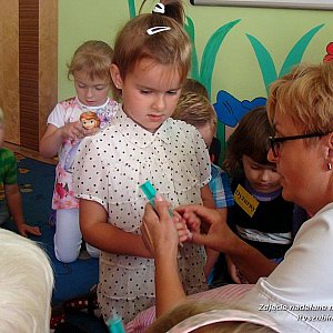 17 września 2014 r. w Przedszkolu ?Słoneczko? w Szubinie w grupie "Pszczółki" gościła pielęgniarka P. Jolanta Kuźniak. Nasz gość rozmawiał z dziećmi na temat zdrowego odżywiania się, dbania o codzienną higienę osobistą oraz sposobach unikania wszelkich zarazków. Przedszkolaki miały możliwość wcielić się w postać lekarza i posłuchać bicia własnego serca przez stetoskop. Były też opatrunki i zastrzyki, ale tym razem nikt się nie bał. Wszystkie dzieci były bardzo zaangażowane w zajęcia i chętnie zgłaszały się do kolejnych zadań i doświadczeń. Dziękujemy Pani Jolancie za duże zaangażowanie oraz poświęcony przedszkolakom czas.