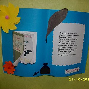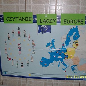 Październik w Zespole Szkół w Kowalewie był czasem wielkiego świętowania. Zarówno uczniowie, jak i nauczyciele z ochotą przystąpili do współpracy z biblioteką szkolną, dzięki czemu mogliśmy uczestniczyć w wielu ciekawych przedsięwzięciach. Od początku października Klub Przyjaciół Książki przygotowywał oprawę święta. W bibliotece były wystawy informujące o obchodach MMBS, gazetki, m. in. ?Cytaty książce?. Dużym zainteresowaniem cieszyła się akcja ?Podaruj książkę bibliotece?. Bibliotekarka przeprowadziła dla dzieci zajęcia podczas których dzieci zapoznały się z literaturą europejską. Projekt ten odbył się pod hasłem CZYTANIE ŁĄCZY EUROPĘ. W pierwszym tygodniu dzieciom czytano Szkolne przygody Pimpusia Sadełko Marii Konopnickiej. W kolejnych tygodniach wykaz przeczytanych książek przedstawiał się następująco: Tydzień duński ? baśnie Hansa Christiana Andersena; Tydzień francuski ? Kot w butach Charlesa Perraulta; Tydzień niemiecki ? baśnie braci Grimm; Tydzień angielski ? baśnie Jacobsona. Miłośnicy konkursów mogli zaprezentować swoje umiejętności plastyczne w konkursach na plakat promujący czytanie, laurka dla biblioteki. Na przerwach uczniowie mogli sprawdzić swoją wiedzę rozwiązując zagadki na temat książek i bibliotek. Dla gimnazjalistów przeprowadzono konkurs czytelniczy pt. ?W krainie Władcy Wyobraźni? na podstawie książki J.R.R. Tolkiena. Na zakończenie spotkań z książką uczniowie przyszli do szkoły przebrani za postacie z bajek i mogli obejrzeć wesołe przedstawienie przygotowane przez Klub Przyjaciół Książki pt. ?Królewna Śnieżka?. W tym dniu każdy został obdarowany słodkim upominkiem. MMBS był okazją do propagowania czytelnictwa, skutecznym sposobem zachęcenia dzieci do czytania i zabawy z książką.