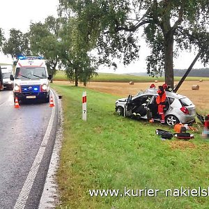 Nakielscy policjanci wyjaśniają okoliczności tragicznego w skutkach wypadku drogowego do jakiego doszło w miejscowości Wieszki. Po uderzeniu kii ceed w drzewo, na skutek doznanych obrażeń, zginęła 72-letnia pasażerka auta. Sprawę nadzoruje prokuratura. Zgłoszenie o tym, że w miejscowości Wieszki w gm. Nakło, kia ceed uderzyła w drzewo, dyżurny nakielskiej policji otrzymał wczoraj (21.08.16) około 11.20. Na miejsce zostały skierowane wszystkie służby ratunkowe. Pracujący na miejscu kryminalni oraz mundurowi z referatu ruchu drogowego z Nakła prowadzili oględziny i przesłuchiwali świadków. Z ich wstępnych ustaleń wynika, że kierujący pojazdem marki Kia Ceed, 74-letni mieszkaniec Warszawy, jadąc w stronę Nakła, na łuku drogi, stracił panowanie nad pojazdem, w wyniku czego auto zjechało na pobocze i uderzyło w przydrożne drzewo. Na skutek doznanych obrażeń, na miejscu, zmarła 72-letnia pasażerka, kierowca z obrażeniami ciała został przetransportowany do jednego z bydgoskich szpitali. Mieszkaniec Warszawy, który prowadził auto był trzeźwy. Okoliczności tego tragicznego w skutkach wypadku drogowego wyjaśniają pod nadzorem prokuratora policjanci z Nakła.