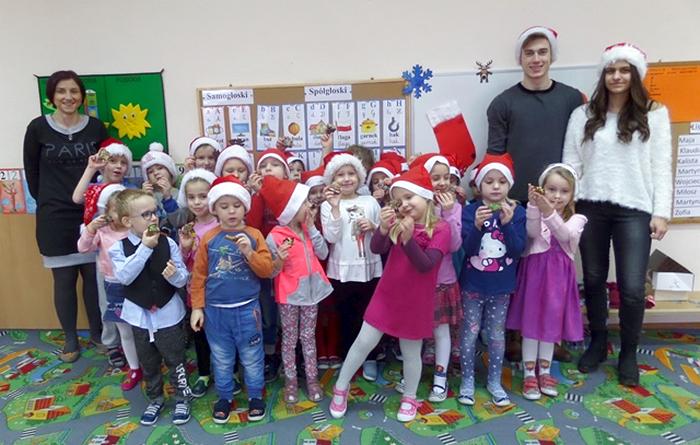 We wtorek, 6 grudnia 2016 r. dzieci z naszego przedszkola odwiedził długo wyczekiwany gość ? Święty Mikołaj wraz z pomocnikami. W rozdawaniu prezentów Mikołajowi pomagały przedstawicielki Młodzieżowej Rady Miejskiej, które przybyły do dzieci ze słodkim poczęstunkiem. Kolejną niespodziankę dla dzieci przygotowała pani dyrektor przyprowadzając na spotkanie labradorkę Abi w przebraniu Mikołaja. Dzieci zaprezentowały gościom przygotowane piosenki i wierszyki oraz złożyły obietnice, że będą grzeczne i posłuszne. Mikołaj wręczył dzieciom prezenty i zapewnił, że odwiedzi je za rok. Na zakończenie wykonano pamiątkowe zdjęcia. Za pomoc w organizacji Mikołajek dla dzieci dziękujemy Młodzieżowemu Ośrodkowi Adaptacji Społecznej w Szubinie.