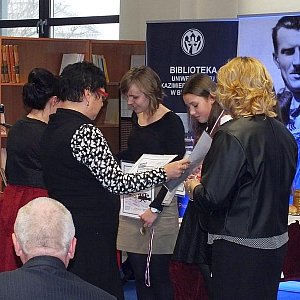 1 grudnia 2016r. odbyło się uroczyste wręczenie nagród i wyróżnień uczestnikom Wojewódzkiego Konkursu Literackiego - Filmowego pn. Pióro i Kamera. W Bibliotece Głównej Uniwersytetu Kazimierza Wielkiego w Bydgoszczy uczniowie naszego gimnazjum, w obecności nauczycieli i rodziców, odbierali gratulacje, dyplomy i nagrody za swoją twórczość. Za najlepszy scenariusz I MIEJSCE zdobyła uczennica kl. 1a - WERONIKA OCZKI. II MIEJSCE należy również do uczennicy naszej szkoły - WIKTORII POBŁOCKIEJ. Wyróżnieni uczniowie to WERONIKA PEZAŁA (za scenariusz) oraz WIKTOR ZIELIŃSKI (za kreację aktorską w filmie "Romeo i Julia"). Z kolei JULITA i MARTYNA RYNARZEWSKIE zdobyły III MIEJSCE za reżyserię. Uczniowie wspierani byli przez swoje polonistki: p. Hannę Wenckowską - Sänger oraz p. Sylwię Tomczyńską - Dorn. Jesteśmy bardzo dumni z tak wielkich sukcesów naszych podopiecznych.