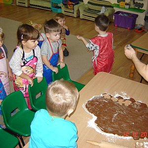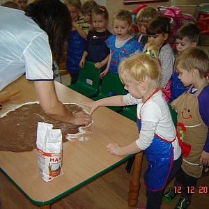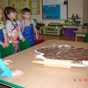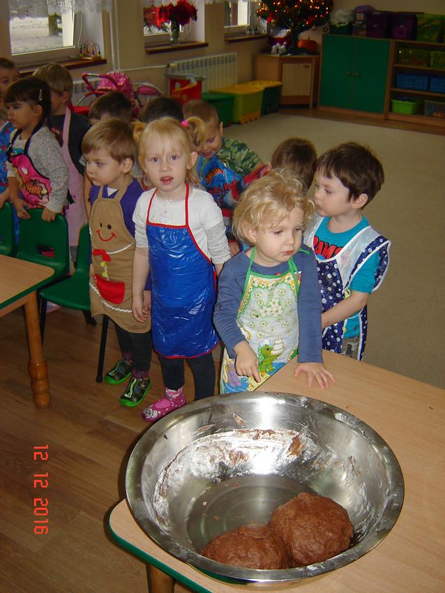 Okres przedświąteczny w przedszkolu to czas intensywnych przygotowań do świat. Grupa Gumisie z Samorządowego Przedszkola nr 2 w Szubinie wraz z nauczycielka zaplanowała jeden z takich dni na upieczenie pierniczków. Wcześniej poznały tradycje i obyczaje Bożonarodzeniowe. Dzieci uczyły się śpiewać tradycyjne kolędy, również piosenki o tematyce zimowo ? świątecznej. Bardzo ważnym elementem było ubranie choinki klasowej. Dnia 13. Grudnia 2016 dopełniły to świąteczne oczekiwanie na upieczenie pierniczków. Wcześniej zgromadziły wszystkie potrzebne produkty do ich upieczenia. Przygotowały fartuszki, zadbały o czystość rak, a potem z zapałem zabrały się do pracy. Dzieci podczas wyrabiania ciasta opowiadały jak w domu ze swoimi najbliższymi tez pieką pierniczki i inne świąteczne ciasteczka. Wiele radości i zadowolenia sprawiło dzieciom wykrawanie kształtów dzięki niezliczonej ilości foremek. W całym przedszkolu unosił się wspaniały zapach pieczonych pierniczków, który wprawił wszystkich w świąteczny nastrój.