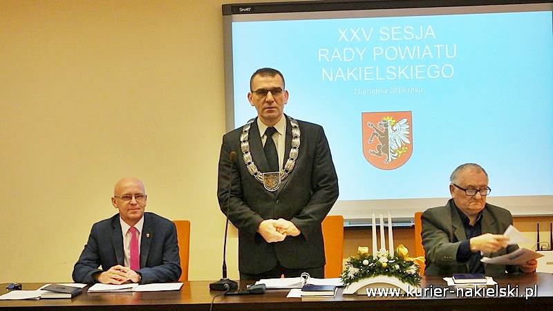 21 grudnia 2016 roku na Przystani Powiat Nakielski odbyła się XXV sesja rady Powiatu Nakielskiego. Sesji przewodniczył Radosław Mrugowski. Sprawozdanie z działalności międzysesyjnej Zarządu Powiatu Nakielskiego przedstawił starosta Tomasz Miłowski. Główne punkty obrad to podjęcie uchwały w sprawie uchwalenia wieloletniej prognozy finansowej powiatu nakielskiego na lata 2017 - 2034 i podjęcie uchwały w sprawie uchwalenia budżetu na 2017 rok. Opinie Składu Orzekającego Regionalnej Izby Obrachunkowej w Bydgoszczy o projekcie wieloletniej prognozy finansowej powiatu nakielskiego i w sprawie opinii o projekcie budżetu powiatu nakielskiego na 2017 roku przedstawił skarbnik Piotr Chudzyński. Przed głosowaniem stanowisko koalicji w sprawie budżetu zaprezentował Ryszard Bagnerowski, natomiast stanowisko Klubu Radnych SLD zaprezentował Tadeusz Sobol, przewodniczący klubu zwrócił uwagę, że w budżecie zaplanowano mniejsze środki niż w roku bieżącym m.in. na bieżące utrzymanie dróg o 250.000 zł, mniejsze środki na ochotnicze straże pożarne, obronę cywilną i zarządzanie kryzysowe o 12.500 zł. Wskazywał, że w projekcie budżetu brak jest środków finansowych na przygotowanie pomieszczeń pod archiwum, bardzo pilnie potrzebnego. Obecnie dokumentacja archiwalna znajduje się w wynajętych pomieszczeniach, za które płaci się nie małe pieniądze. Problem będzie jeszcze poważniejszy z chwilą sprzedaży gminie Nakło nad Notecią budynku przy ul. Gimnazjalnej, w piwnicach którego znajduje się dokumentacja archiwalna. Wskazywał, że w projekcie budżetu zaplanowano środki finansowe na realizację zadań inwestycyjnych na drogach gminnych. Zdaniem klubu SLD powinno się remontować drogi powiatowe, których stan z roku na rok jest coraz gorszy, m.in. na terenie gminy Kcynia, Szubin i Sadki. Poinformował, że radni klubu będą głosować zgodnie z własnym poglądem i sumieniem. Za budżetem zagłosowało 16 radnych, a 5 się wstrzymało od głosu ( 3 z klubu SLD i 2 z PiS). W dalszej części obrad podjęto uchwały w sprawie:przyjęcia planu pracy Rady Powiatu Nakielskiego na 2017 rok; wyrażenia zgody na sprzedaż niezabudowanej nieruchomości w Szubinie; dotacji dla szkół niepublicznych o uprawnieniach szkół publicznych oraz placówek niepublicznych prowadzonych na terenie powiatu nakielskiego. Radni przyjęli "Powiatowy program działań na rzecz osób niepełnosprawnych na terenie powiatu nakielskiego na lata 2017-2021". Przed głosowaniem nad tą uchwałą głos zabrał obecny na sesji, przewodniczący Powiatowej Społecznej Rady ds. Osób Niepełnosprawnych, Marian Olszyński. Rada wspomniany program przyjęła jednogłośnie. Po ogłoszonej przerwie przez przewodniczącego rady, rozszerzono porządek obrad o punkt; podjęcie uchwały w sprawie określenia wydatków, które nie wygasają z upływem roku budżetowego. W wykazie oraz planie finansowym wydatków, które nie wygasają w 2016 roku znalazły się zadania: