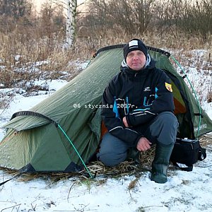 W nocy temperatura spadła do - 11 stopni C. Obozowisko rozbiłem dość niechlujnie, gdyż namiot rozkładałem po ciemku. Przez to też odczuwałem w nocy dyskomfort podczas snu. Swój marsz rozpocząłem o 8:00 rano. W ciągu dnia wiał dość silny wiatr, potęgujący odczucie mrozu. Większość trasy odbywała się wałami przeciwpowodziowymi. Leżący na nich śnieg, spowalniał marsz. Dzisiejszego dnia po raz pierwszy ubrałem kalesony i rękawice. Mróz w ciągu dnia był spory, ale niestety nie znam jego stopnia nasilenia, ponieważ nie sprawdzałem tego na termometrze. Jednak napój, który był przeznaczony do picia podczas wędrówki zrobił się po prostu gęsty i z ledwością wypływał z butelki. Jestem przed miejscowością Oświęcim. Jeśli wszystko odbędzie się bez niespodzianek, prawdopodobnie jutro stawię się w umówionym punkcie, gdzie będę mógł doładować baterie do telefonów i aparatu. Przeszedłem 22 km, razem 94 km, pozostało 953 km.