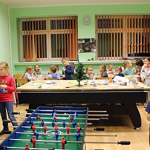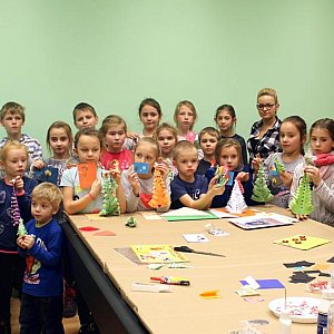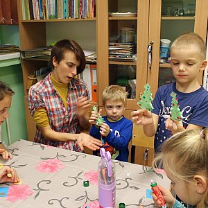 23 listopada 2016 roku był kolejnym, artystycznym dniem w świetlicy wiejskiej w Kołaczkowie. W ten sposób zostały zainaugurowane przygotowania dzieci do Świąt Bożego Narodzenia. Dzieci tworzyły papierowe choinki, które cudownie potem ozdabiały koralikami, cekinami, śnieżynkami. Powodzeniem cieszył się brokat, który długo jeszcze będzie królował w każdym zakamarku pomieszczeń świetlicowych. Każde dziecko zostawiło na kartce papieru swój odcisk palca, który potem zamienił się w renifera. Wszystkie wykonane prace powędrowały z dziećmi do ich domów - chyba znajdą się na każdej choince. Kolejna artystyczna środa - 30 listopada.
