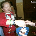 Tradycyjnie - jak co rok !!! Nie wolno nie spytać gwiazd - co mnie czeka w najbliższej przyszłości !!! Dwie wróżki : wróżka Magda (Magdalena Szmyt - opiekun samorządu uczniowskiego) oraz wróżka Irena (Irena Wojciechowska - opiekun świetlicy wiejskiej) przybyły na dyskotekę andrzejkową, w której wzięły udział dzieci z Kołaczkowa. Od godzin popołudniowych dzieci szalały przy dyskotekowych rytmach. W chwilach przerwy na scenę wchodziły wróżki - wróżkom Magdzie i Irenie w przekazywaniu wróżb na przyszłość pomagała asystentka Kasia (Katarzyna Kubiak), która odwiedziła bawiące się dzieciaki ze swojej klasy. Wszyscy chętnie wbijali igłę w ogromne serce z imionami - takim sposobem każdy się dowiedział z kim zwiąże swój los w przyszłości losując gwiazdki, kolory, kwiaty - uczestnicy dowiedzieli się nowych wieści o sobie i swoim otoczeniu niestraszne było bieganie boso, ponieważ buty wędrowały swoimi ścieżkami w stronę drzwi wyjściowych. Bawiące się dzieci przyjęły na chwilę gości - do " starej budy " wpadli obecni gimnazjaliści, którzy opuścili mury naszej szkoły, ale chyba troszkę za nami tęsknią? Fajnie było się spotkać - było sympatycznie! Obyśmy zawsze tak chętnie się spotykali z naszymi abiturientami - a oni także niech chętnie wracają w mury podstawówki. Kiedy przyszła pora się rozejść - dzieciaki niechętnie opuszczały imprezę, dziękując organizatorkom: wróżce Magdzie i Irenie. Oczywiście spotkamy się za rok ale wcześniej jest karnawał, do zobaczenia na wspólnej zabawie.