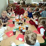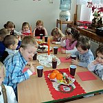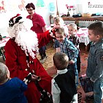 21 grudnia 2012 r. w Samorządowy Przedszkolu nr 2 w Szubinie, Wigilia - jest nastrój, choinka, mnóstwo uśmiechniętych buziek wyczekujących niesamowitego gościa i ta wiara, że On naprawdę istnieje. Już od samego rana można rozpoznać było, że to nie jest zwykły, codzienny dzień, ale jeden z tych wyjątkowych!!! Dzieci od samego rana odświętnie ubrane,nastrój we wszystkich salach i kolędy śpiewane przy choince. Również w grupie Smerfy - jasełka, kolędy, dzielenie się opłatkiem, uśmiech, radość ze spotkania z gwiazdorem upragnionym i oczekiwanym przez Smerfiki dwu, trzy i czteroletnie. Rodzice zadbali o prezenty, które wręczał gwiazdor Krystian Maludziński, tata dwuletniego Wiktorka. Do wspólnych przeżyć jak zawsze włączyła się nieoceniona i niesamowita grupa młodzieży z LO pod kierunkiem Pani Bernadety Kowalskiej. Rolę wesołych gwiazdorów w innych grupach wcielili się Sebastian Rygielski i Paweł Baczyński, chłopcy specjalnie przyjechali do nas na świąteczne spotkanie oraz śnieżynki Jagoda Hek i Kamila Kilkowska. Reniferami zajechał do nas również gwiazdor gminy Artur Krajewski. Tego roku swoją obecnością ubogaciły nas gwiazdory i sprawiły dzieciom wielką frajdę. Dzieci odwdzięczyły się Gwiazdorowi piosenkami, wierszami a odważni nawet uściskiem i buziakiem.