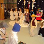 W przedświątecznym nastroju dzieci z grupy ?Pszczółki? przy Szkole Podstawowej nr 1 w Szubinie przybliżyły swoim rodzicom i rówieśnikom to, co przeżyła Maryja wraz z Józefem w czasie narodzin Bożego Syna. Żłóbek, świecące choinki, aniołki na scenie, przepiękne kostiumy, to wszystko razem dodało prawdziwego uroku i nastroju świątecznego. Słowo mówione przeplatane było kolędami, które śpiewały dzieci jak i wszyscy zgromadzeni. Takie spotkanie przypomniało o tym, że święta są już blisko. Dzieci przygotowała Ewa Stachowiak.