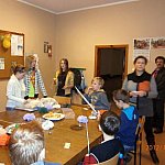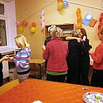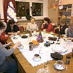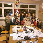 Świetlica wiejska w Kołaczkowie jest miejscem spotkań, pracy i różnorodnych kontaktów dla różnych grup wiekowych - począwszy od kilkuletnich maluchów a skończywszy na osobach w wieku emerytalnym. Spotykające się grupy, w ramach zajęć stałych, po miesiącach i latach wspólnej pracy i kontaktów - zmieniły się w zgrane ekipy, które w wielu przypadkach można określić przyjacielskimi !!! Dlatego też nie mogło się obyć bez tradycyjnego przełamania się opłatkiem przed Świętami Bożego Narodzenia. Życzenia świąteczne składały sobie panie, które od prawie 3 lat spotykają się dwa razy w tygodniu na wspólnej gimnastyce. Jest to grupa, jaką trudno byłoby znaleźć gdziekolwiek indziej - dziewczyny stanowią tak zgraną, sympatyczną, wesołą, życzliwą grupę, że trudno byłoby sobie wyobrazić, aby Ich w świetlicy mogło zabraknąć !!! Kasia Bramańska - rehabilitantka prowadząca zajęcia, stoi na czele tej uroczej gromadki pań. Po raz kolejny przed Świętami zawitała do nas Halinka Żygowska - mieszkanka Kołaczkowa - z balonami, z których potrafi wyczarować różne cuda. Obecne dzieci dzielnie próbowały Jej pomóc. Rok temu w świetlicy stanął ogromny bałwan z balonów! Tym razem zawitała do nas balonowa choinka. Dziękujemy i zapraszamy ponownie.