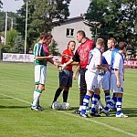 Trener gospodarzy Wiesław Stepczyński przed dzisiejszym spotkaniem miał problemu z ustalaniem pierwszej jedenastki. Nieobecni byli: bracia Zajdlewiczowie, Maciej Chudzyński, Dawid Stodolny, Bartłomiej Szweda oraz Jacek Żurawski. Na domiar złego tuż przed spotkaniem z gry wypadł Marcin Wiśniewski, który narzekał na uraz. W efekcie czego na prawej obronie od pierwszych minut oglądaliśmy Marcina Janickiego. U boku Roberta Jurka w środku pomocy zagrał Mirosław Obremski, a na prawym skrzydle wystąpił Michał Pokorski. Za strzelanie bramek byli odpowiedzialni Dawid Janicki oraz Radosław Bojas.