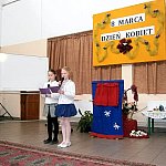 W sobotnie popołudnie, 9 marca 2013 r. w Szkole Podstawowej w Kołaczkowie zorganizowano Dzień Kobiet. Główni organizatorami byli: Sołtys Wioletta Kończal wraz z radą sołecką oraz nauczycielki: Katarzyna Kubiak i Agnieszka Grobelska, które z klasą III przygotowały przedstawienie oczywiście o tematyce kobiecej. Obie panie prowadziły całą imprezę. Po przedstawieniu odbyły się konkursy, w których brały udział obecne panie. Było masa śmiechu podczas karmienia się z zawiązanymi oczami, panie wykonywały na czas ozdoby świąteczne, malowały dzieci. Ważnym elementem spotkania była prelekcja dla pań o przemocy w rodzinie ? temat może mniej świąteczny, ale jakże ważny. Temat skierowany dla kobiet ? dzieci w tym czasie spędzały czas na zabawach grupowych poza patio. Panie spędzały czas przy zastawionych stołach ? słodkości ufundowane i przygotowane przez mieszkańców i Radę Sołecką. Beata Wożniak ufundowała dla występujących dzieci wyjazd do kina lub na basen. Wszystkie obecne panie otrzymały po lizaku w kształcie tulipan wręczali chłopcy występujący w przedstawieniu. Dużym zainteresowaniem cieszył się kiermasz rękodzieła o tematyce wielkanocnej: kwiatki, figurki, koszyczki itd. Wszyscy obecni poszli do domów zaopatrzeni w świąteczne ozdoby. Fajnym akcentem było odśpiewanie obecnym na imprezie trzem Jubilatom STO LAT ? najmłodszy skończył 10 lat??najstarsi ? kilkadziesiąt. !!! Spotkanie było sympatyczne i uczestnicy nie żałowali, że tak spędzili sobotnie popołudnie.