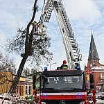 13 marca 2013 r. przeprowadzono przy ulicy Ogrodowej wycinkę Akacji, której stan zagrażał bezpieczeństwu przechodniów i pobliskim budynkom. W ramach doszkalania umiejętności strażaków, dwa zastępy z Jednostki Ratowniczo-Gaśniczej nr 2 w Szubinie oraz podnośnik hydrauliczny uczestniczyły w ćwiczeniach. Zadaniem strażaków było zabezpieczenie terenu oraz sukcesywne ścinanie drzewa i doszkolenie technik posługiwaniem się pilarką spalinową. Pocięciem i wywózką konarów zajęli się pracownicy interwencyjni z Urzędu Miejskiego w Szubinie. Na czas prowadzonych prac ulica Ogrodowa była zablokowana, wyznaczono objazd ul. Bema, Dąbrowskiego do Nakielskiej. Po ponad 3 godzinach przywrócono ruch drogowy i pieszy. Na uwagę zasługuję fakt, że wspólne działania z Państwową Strażą Pożarną dają wymierne korzyści dla obydwóch stron. Z jednej strony obniża kosztów tego typu zadań co stanowi duże oszczędności dla budżetu Gminy niż wynajęcie specjalistycznej firmy. Natomiast strażakom daje możliwość doszkolenia się w tego typu czynnościach, które muszą okresowo przeprowadzać dla swoich pracowników. Środowa akcje jest jedną z wielu świadczących o dobrej współpracy strażaków z PSP czy też z OSP z jednostkami samorządowymi.