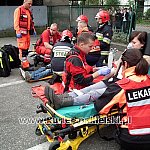 W dniu 22 września 2011 roku odbywały się ćwiczenia obronne pod kryptonimem KOBRA-2011. W dniu wczorajszym jak informowaliśmy służby ratownicze walczyły z pożarem wielkopowierzchniowym w Sipiorach. Dzisiaj w ramach założeń o godz. 9:00 na stanowisko kierowania Komendy Powiatowej PSP w Nakle nad Notecią wpłynęło zgłoszenie o pożarze budynku Urzędu Miasta i Gminy w Nakle nad Notecią. Do akcji ratowniczo-gaśniczej zadysponowano 6 zastępów z PSP i OSP. Ostatecznie nie wyjechał zastęp Ochotniczej Straży Pożarnej w Paterku. Nim dotarła straż nastąpiła ewakuacja z budynku pracowników i petentów zarządzona przez Sławomira Napierałę - Burmistrza Miasta i Gminy w Nakle nad Notecią. Na miejscu okazało się, że na ostatnim piętrze zostały odcięte przez ogień dwie osoby, które musiały być ewakuowane przy pomocy podnośnika. Osoby te zostały poszkodowane i podtrute dymem dlatego wezwano pogotowie ratunkowe. Policja zamknęła na około 30 minut całkowicie ruch kołowy na ul. Piotra Skargi. Po około 40 minutach ten element ćwiczeń został zakończony.