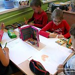 W bibliotece szkolnej w Zespole Szkół w Kowalewie rozpoczął się cykl spotkań poświęcony książeczkom z serii ?Franklin i przyjaciele?. Pani bibliotekarka przeczytała dzieciom książkę pt.: Franklin i książka z biblioteki. Po zakończeniu dzieci zastanawiały się wspólnie czy gdyby ktoś z nich zagubił książkę z biblioteki to czy musiałby przychodzić do niej w przebraniu, zakamuflowany, tak by pani bibliotekarka nie poznała delikwenta? Dzieci zaczęły radzić Franklinowi co oni zrobiliby w takiej sytuacji. Zastanowiliśmy się również nad tym w jaki sposób można zapisać się do biblioteki, i jak to się dzieje, że komputer wszystko wie, jak się nazywamy, jakie książki do tej pory wypożyczyliśmy i gdzie znaleźć te, które nas interesują. Gdy już wszystkie pytania otrzymały odpowiedzi, uczestnicy wymyślili nowe przygody Franklina i zabawili się w grafików, którzy projektują i rysują okładki do książek. Efekty swej pracy pozostały do wglądu małych czytelników. Może w przyszłości ujrzymy w księgarni przygody Franklina na traktorze. Na zakończenie dzieci wybrały franklinowe książeczki do domu oraz otrzymały pamiątkowe zakładki. Natomiast dzieciom z przedszkola czytano przygody pt.: ?franklin i statek kosmiczny? ? dzieci rysowały piękne ilustracje do tekstu oraz miały możliwość własnoręcznie wykonać rakietę.