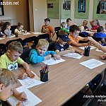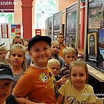 Dzieci z grupy Biedronki z Zespołu Szkół w Szubinie z wychowawczynią Sylwią Krajewską odwiedziły Muzeum Ziemi Szubińskiej i nową wystawę ?Magiczne miejsca ? dworce kolejowe powiatu nakielskiego?. Oprócz oglądania obrazów autorstwa Krystyny Banach i Mirosława Banacha i zdjęć m.in. zabudowy kolejowej dzieci zapoznały się również z różnymi przedmiotami tworzącymi ekspozycję m.in. biletami, aparatem telefonicznym czy trąbką konduktora. Wspólnie przypomnieliśmy wiersz Juliana Tuwima Lokomotywa, który stał się też podstawą zajęć plastycznych, podczas których powstały kolorowe wagoniki, które na zakończenie spotkania utworzyły wraz z ich twórcami pociąg.