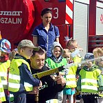 Dzieci z Niepublicznego Przedszkola ?Słoneczko? w Szubinie wybrały się z wizytą do pobliskiej Państwowej Straży Pożarnej, gdzie niezwykle gościnnie zostały przyjęte przez załogę z Jednostki Ratowniczo-Gaśniczej nr 2 w Szubinie. Pan Mariusz bardzo ciekawie opowiadał o swojej pracy, o akcjach w jakich brał udział. Przedszkolaki dowiedziały się, że strażacy nie tylko gaszą pożary, ale również pomagają w czasie powodzi, usuwają skutki wypadków samochodowych oraz połamane przez wichury drzewa itp. Milusińscy mieli okazję zobaczyć wozy strażackie wraz z całym wyposażeniem, sprzęt gaśniczy i strój w jaki ubierają się do akcji. Na zakończenie spotkania dzieci miały okazję wejść do samochodu strażackiego. Po spotkaniu większość chłopców zdeklarowała, że w przyszłości chce zostać strażakami.