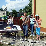 8 czerwca 2013 r. w Niepublicznym Przedszkolu ?Słoneczko? odbył się Festyn Rodzinny. Pogoda dopisywała, a frekwencja była nadspodziewanie wysoka. Przybyli niemal wszyscy rodzice wraz ze swoimi dziećmi, wychowankami naszego przedszkola oraz tymi starszymi i młodszymi. Dzieci przywitały wszystkich spektaklem przedstawiającym losy Aurory ? Śpiącej Królewny. W rewanżu rodzice wystawili przezabawną sztukę pt. ?Wysportowany Kopciuszek?. Dzień Mamy i Taty rozpoczął się więc salwą śmiechu. Na dzieci czekała moc atrakcji. Dwa dmuchane zamki ? zjeżdżalnie, basen pełen kolorowych kulek, klaun ze swoimi zabawami, barwnymi balonami i bańkami mydlanymi. Była też wata cukrowa oraz popcorn dla wszystkich. Wykwalifikowany kucharz piekł kiełbaski na grillu, częstował smalcem i latosimi ogórkami kwaszonymi. Cień nad suto zastawionymi stołami zapewnił namiot użyczony nam przez Panią Katarzynę Nowak z firmy Bastat ? serdecznie dziękujemy. Odwiedził nas również patrol policji, który czuwał nad bezpieczeństwem wszystkich oraz udostępnił radiowóz zwiedzającym. Były tańce i zabawa, ks. Artur Zaraś wraz z licealistkami zajęli się oprawą muzyczną, za co również serdecznie dziękujemy. Radosne uśmiechy na twarzach dzieci i zadowolenie rodziców, były najlepszym dowodem, że festyn cieszył się sporym uznaniem.