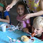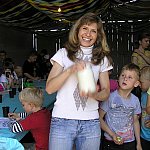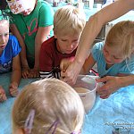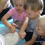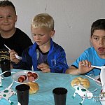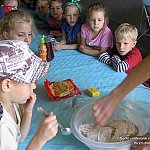 Dzieci z grupy Biedronki wraz z klasą II c z "szubińskiej dwójki" wybrały się na wycieczkę do Szaradowa na zaproszenie państwa Konowalskich. Podczas wycieczki dzieci zapoznały się z wyglądem gospodarstwa wiejskiego.Uczniowie mieli możliwość zobaczenia procesu pozyskania mleka i przekazania go z gospodarstwa do mleczarni. Kolejną niespodzianką było wyrabianie ciasta na chleb, a następnie pieczenie i degustacja chleba.Dzieci wykonywały też prace plastyczno-techniczne "Krówka z papieru". Na zakończenie dzieci zjadły pieczona kiełbaskę oraz jogurt wykonany z mleka i owoców.