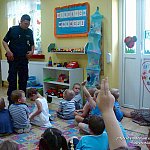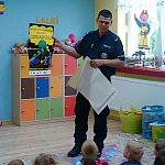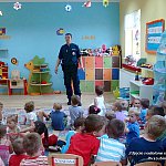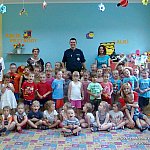 21 czerwca 2013 r. w Przedszkolu ?Słoneczko? w Szubinie odbyło się kolejne spotkanie z policjantem sierżantem Damianem Ziółkowskim >>>>. Tematem przewodnim było ?Bezpieczeństwo podczas wakacji". Dzieci z dużą uwagą i skupieniem słuchały naszego gościa, który opowiadał między innymi o zasadach bezpieczeństwa nad wodą oraz podczas pobytu na wsi latem, podczas żniw. Przedszkolaki dowiedziały się również, jak powinny reagować, gdy podejdzie do nich ktoś nieznajomy, a także jaką pozycję przyjąć, gdy zaatakuje je pies. Pan policjant przestrzegał dzieci, aby nie oddalały się od swoich rodziców podczas spaceru. Zachęcał też do noszenia tzw. "odblasków", które poprawiają widoczność pieszego wieczorem. Na koniec nasz gość rozdał dzieciom książeczki na temat bezpieczeństwa nad wodą. Pragniemy serdecznie podziękować Panu Damianowi za wspólne spotkanie, które przebiegło w bardzo miłej i przyjaznej atmosferze oraz za cenne rady.