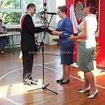 Zakończenie roku szkolnego 2012/2013 w Zespole Szkół Ponadgimnazjalnych w Szubinie rozpoczęła uroczysta msza święta w kościele parafialnym pw. św. Marcina pod przewodnictwem księdza Aleksandra Modraka. Zaraz po mszy uczniowie wraz z wychowawcami pojawili się w sali gimnastycznej, gdzie odbyła się akademia, która swoja obecnością uświetnili: Starosta Nakielski Tadeusz Sobol, Przewodnicząca Rady Rodziców Róża Trela i tegoroczni maturzyści. Pani Dyrektor Elżbieta Nowicka powitała zgromadzonych i podsumowała kończący się właśnie rok szkolny. Wiemy, że obfitował on w sukcesy uczniów nie tylko na szczeblu powiatowym, ale i wojewódzkim. Po czym nadszedł czas na wręczenie świadectw z paskiem i nagród wyróżniającym się uczniom: Natalii Panek - 5,09; Adrianowi Jarmuż - 5,00; Edycie Gaczkowskiej - 4,79; Kamilowi Jarmuż -4,75; Maciejowi Goździk - 4,91; Sandrze Król - 4,75; Monice Nowickiej - 4,82. Uczniowie klasy II Technikum Ekonomicznego otrzymali certyfikaty potwierdzające umiejętności z zakresu pierwszego ukończonego modułu. Wręczyli je nauczyciele przedmiotów zawodowych. Pani Dyrektor z wielka przyjemnością wręczyła świadectwa dojrzałości. Wskaźnik zdawalności matury to blisko 90%. Gratulujemy. Uroczysta akademia to jednocześnie okazja do pożegnania odchodzącego na zasłużona emeryturę Pana Ryszarda Adamczewskiego.