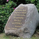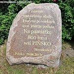 29 czerwca 2013 r. Pińsko obchodziło 800-lecie istnienia miejscowości, z tej okazji zorganizowano uroczystość rozpoczętą odsłonięciem kamienia upamiętniającego tę rocznicę oraz festyn. Kamień wykonała firma Mariusza Domżalskiego z Kcyni. Poświęcenia głazu dokonał ks. proboszcz Jacek Pawelczyk. Nie zabrakło życzeń na kolejne lata na ręce sołtys Gabrieli Kubisiak między innymi od przewodniczącego Rady Powiatu Artura Michalaka, zastępcy burmistrza Szubina Mariusza Piotrkowskiego, radnej sejmiku wojewódzkiego Silvany Oczkowskiej. Imprezę prowadził Artur Krajewski. W wydarzeniu uczestniczyło Muzeum Ziemi Szubińskiej, które przygotowało plenerową wystawę, prezentowaną podczas festynu jego uczestnikom. Wystawa poświęcona jest historii wsi, jej celem jest przybliżenie rąbka historii miejscowości, w której do dziś zachowały się ślady dawnego krajobrazu. Pejzaż ten tworzy przede wszystkim piękny niegdyś zespół pałacowo-parkowy z połowy XIX w. ze stawem, ozdobnymi mostkami, wysepkami oraz bogatym drzewostanem. Wystawa pokazuje zdjęcia i materiały z zasobów muzealnych wyszukanych w kronikach, gazetach, publikacjach oraz ze zbiorów prywatnych. Niewielka odległość od Szubina sprawia, że przeszłość obu miejscowości wiąże się m.in. w osobach właścicieli, w powstaniu wielkopolskim czy chociażby życiu harcerzy, dlatego znajdziemy na niej elementy wspólne. Wystawę przygotowały Kamila Czechowska i Katarzyna Cieniuch.
