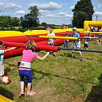 W minioną niedzielę, 7 lipca 2013 r. w Szaradowie odbył się festyn rodzinny, którego celem była zbiórka funduszy na plac zabaw dla dzieci. Frekwencja przerosła najśmielsze oczekiwania. Mnóstwo ludzi przybyło nie tylko z sołectwa Szaradowo, ale także z okolicznych wsi i Szubina. Na początku wszystkich powitał sołtys Szaradowa Henryk Sowa. Dużym zainteresowaniem cieszył się występ zespołu "Jesienny Kwiat" z Szubińskiego Domu Kultury oraz Teatru Meandry działającego przy szubińskim liceum. Dzieci uczące się w szkole w Mycielewie pod opieką nauczycieli przygotowały godzinny występ artystyczny. Turniej Strzelecki o Puchar Sołtysa Szaradowa, który przeprowadziło Stowarzyszenie Młody Szubin wygrał Krystian Dzierżęga z KS Kaliber. Natomiast bieg o puchar Dyrektora Zespołu Szkół w Mycielewie wygrał Arkadiusz Wojtczak przed Sławomirem Przybylskim i Bartoszem Winkowski. W biegu wzięło udział ponad 130 zawodników. Wyzwanie druhów z OSP Słonawy w przeciąganiu liny, które zakończyło się remisem, podjęli: Artur Michalak, Maciej Rejment, Robert Kawecki, Henryk Sowa, Mariusz Piotrkowski, Mariusz Zieliński. Niesamowitym przeżyciem był prawie kilometrowy przemarsz orkiestry dętej z Koronowa, która wykonała pokaz muzyki paradnej oraz koncert dla dużej publiczności. Tego dnia nie mogło zabraknąć występu zespołu tanecznego Projekt PIŃSKO z zaprzyjaźnionego sołectwa. W czasie trwania festynu można było nabyć cegiełki szczęścia, pod którymi kryły się atrakcyjne nagrody.